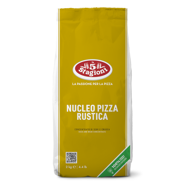Nucleo Pizza Rustica è un preparato di nuova concezione utilizzabile in tutti i tipi di impasto. Si tratta di un concentrato di crusca e semi non termotrattati che arricchisce il bouquet aromatico ed è utilizzabile sia per la personalizzazione degli impasti di pizza sia come spolvero alternativo. È particolarmente indicato per impasti diretti a lunga lievitazione a temperatura controllata, in percentuali variabili da 5 al 15%.